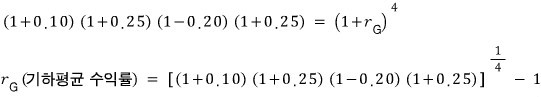 In other words — if that whole sequence of returns happened on a compound basis, and you wanted to express it as one annual return rate, that’s your geometric average return.