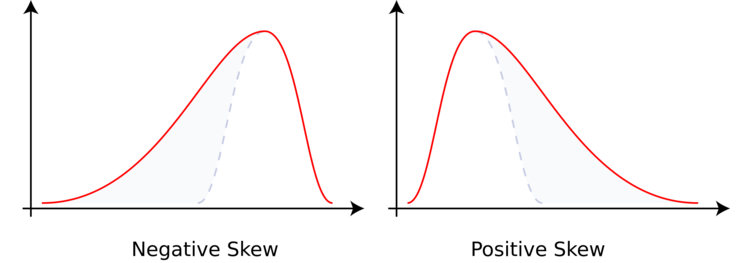 Negative skew is leaning toward the positive side, and positive skew is leaning toward the negative side!