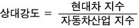 The opposite case: Hyundai Motor’s index is growing while the auto industry index is barely budging. Then we’d say Hyundai Motor is leading the auto industry’s performance. heh heh heh