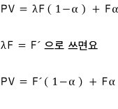Present Value, sliced into 100 parts: $\alpha$ portion of it comes from $F$, and the remaining $(1-\alpha)$ portion comes from $F'$. That’s what’s going on!!!