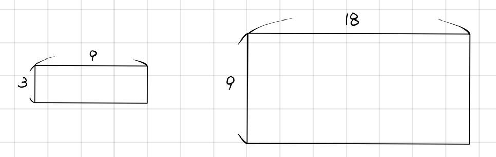 I had a farm: 9 wide / 3 tall. To expand, I bought up the surrounding land. Now it’s 18 wide / 9 tall — meaning, I expanded 2× horizontally / 3× vertically.
