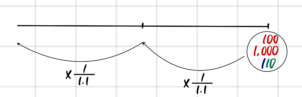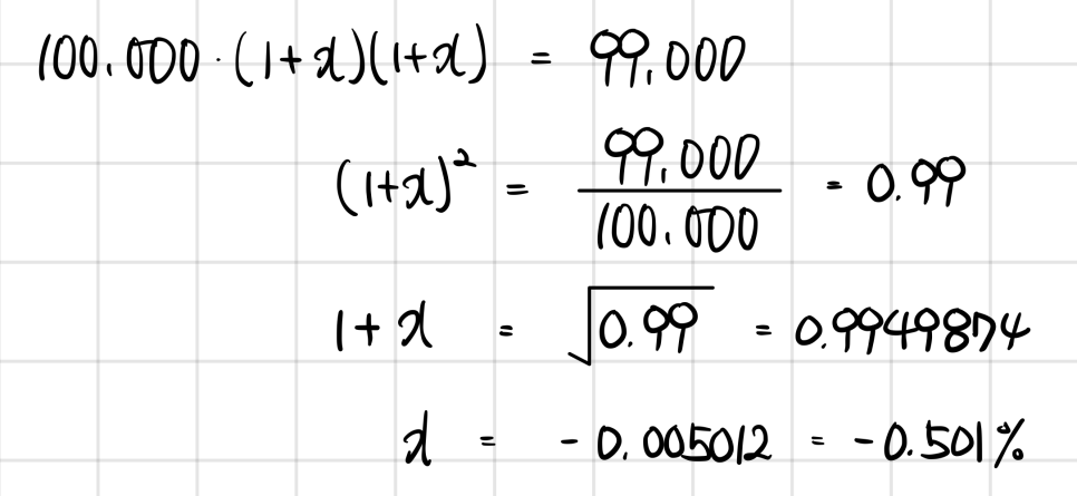 Day 2: 110,000 → 110,000(1-0.1) = 100,000(1+0.1)(1-0.1) = 99,000