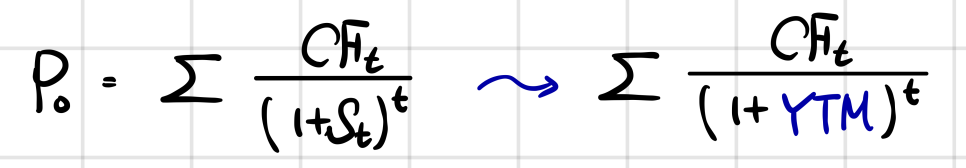 What we usually just call “interest rates” — the Spot Rate and Forward Rate. And YTM (Yield-to-Maturity) refers to the “annualized average return” that a price is expressing, given that price. And of course, the average here is a geometric mean.