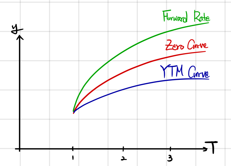 So, if spot is upward sloping, the Forward Curve is drawn above the Spot Curve. If spot is downward, it’s drawn below.