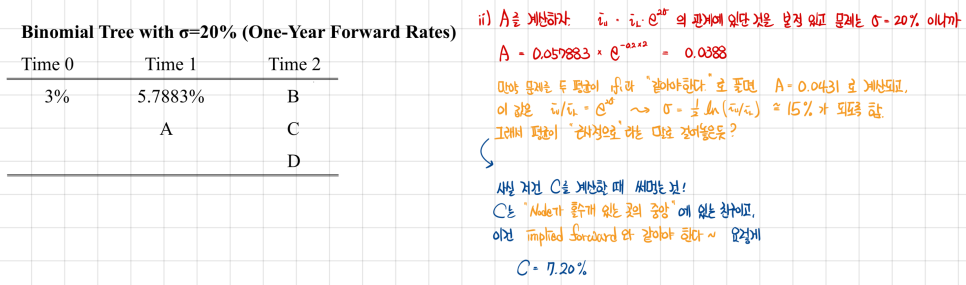 This time we build the interest rate tree from scratch — calibration, e^{2σ} forward-rate spacing, and all — then value it via backward induction or pathwise.