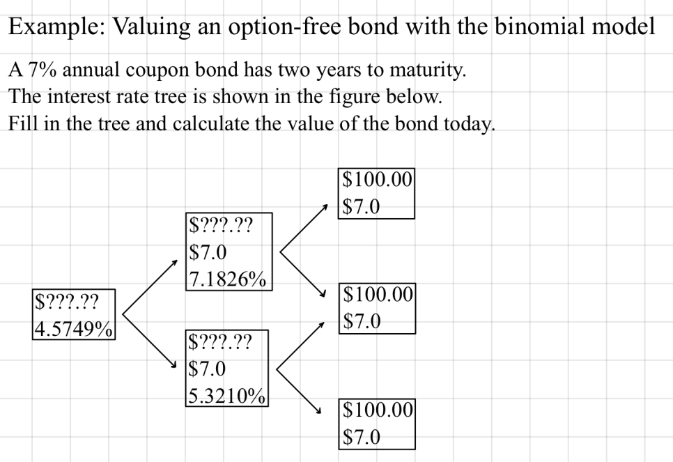 A quick walkthrough of valuing option-free bonds using backward induction on a binomial tree, plus why pathwise valuation matters when cash flows are path-dependent.