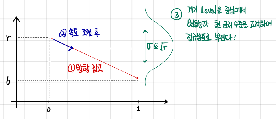- dz: a tiny random-walk kick (dz ~ N(0, dt))