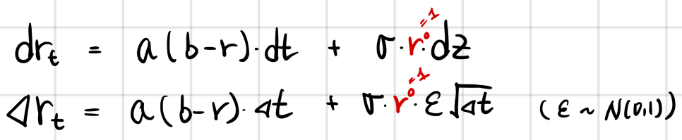 That’s the CIR philosophy for modeling the next period’s rate change. And it’s a model that’s actually used in the real world — not just academic flavoring with no practical bite.