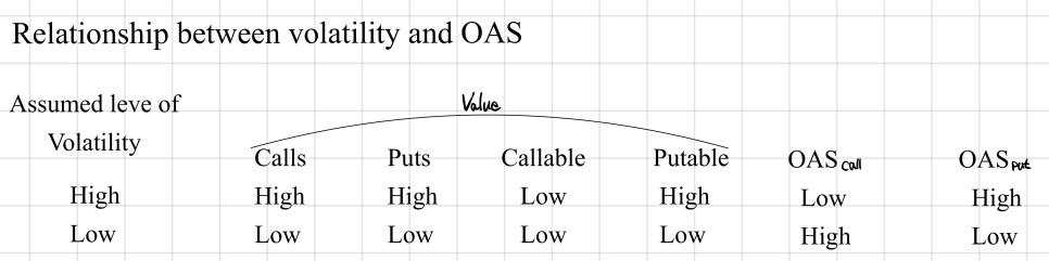 Which means: higher σ↑ → the OAS of the callable acts in the direction of getting ↓ smaller.