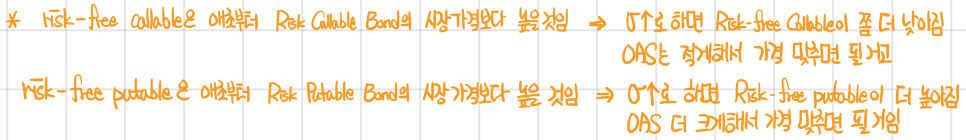 So the flow was: design a tree like this → valuate a straight bond → swap in cash flows with the call/put rule applied → valuate the risk-free callable/putable → compare it against the price of the actual credit risky callable bond → there’s a gap (the OAS), and we adjust by exactly that gap until the gap disappears. That’s what we did, yeah?