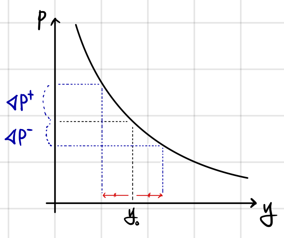 But here’s the thing: how much a bond’s price moves is different when rates go down vs. when rates go up. (Because price is convex in $y$.)