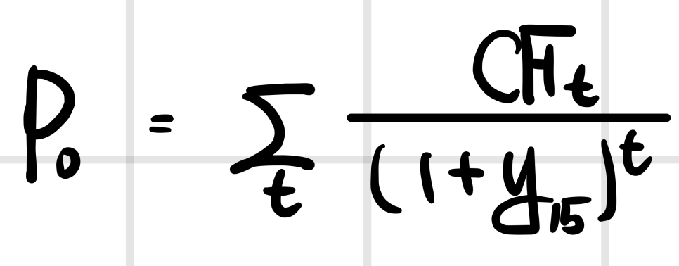 So suppose the market’s required yield right now is 3%, and we’ve got a 15-year bond with coupon rate = 3%, trading at par at $100. The *only* thing driving that $100 price is the 15-year YTM!