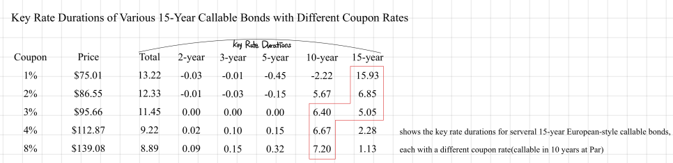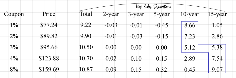 Anyway — the key point of this Key Rate Duration section is not that you need to know how to calculate each of those individually. It’s whether you can read this table.