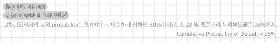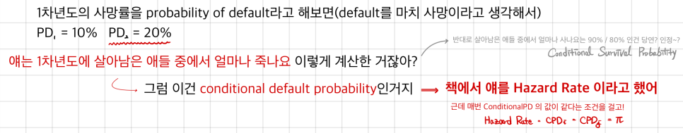 ⇒ PD computed without slapping a condition on top like this — that’s called unconditional probability of default.