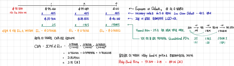 Credit Valuation Adjustment (CVA): is the sum of the present value of the expected loss for each period CVA = price of risk-free bond − price of risky bond