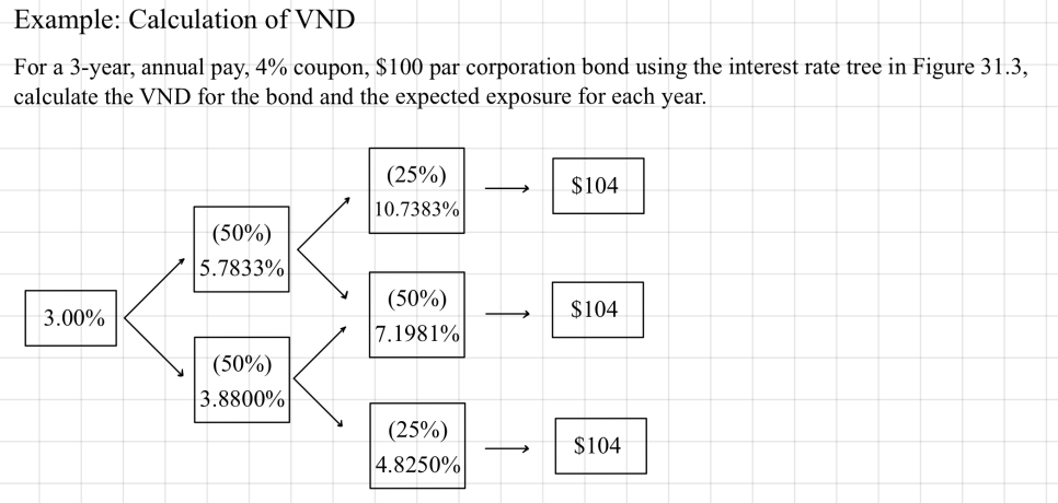 VND values the risky bond using the risk-free rate. Remember when we did CVA earlier? We discounted the corporate bond at the risk-free rate, and then went “OK we still need to adjust this~” and subtracted CVA. That thing we discounted at the risk-free rate — that’s basically VND. heh