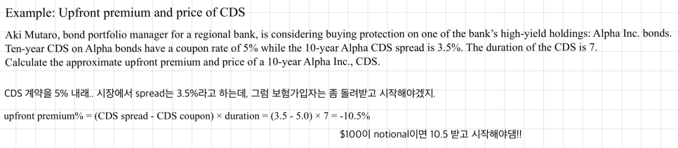Price of CDS (per $100 notional) = $100 β upfront premium [$]