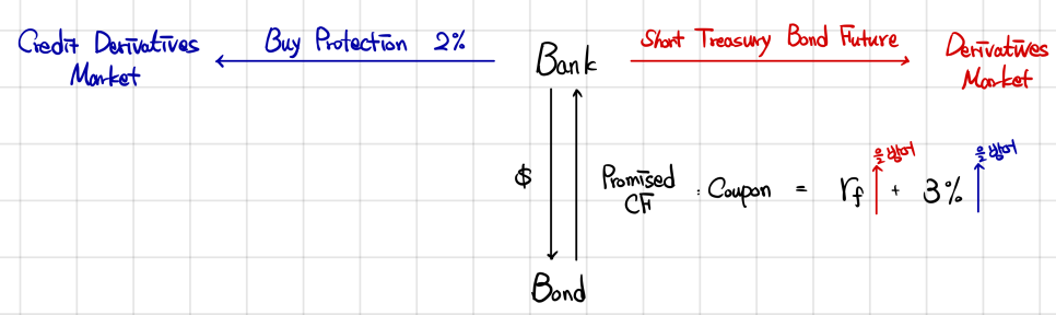 Say a bank picks up a bond, and in the bond market that bond pays a fixed coupon at risk-free + 3% spread.