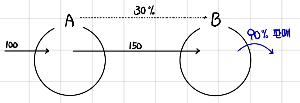 OK so now period-end rolls around, and we sit down to do the equity-method accounting. The point is — you can’t just grab 30% of B’s Net Income and slap it onto A’s equity-method investment line. These two are tangled up in each other’s pockets. All that actually happened is some inventory walked from B’s warehouse to A’s warehouse — and yet, because of that walk, B’s books are showing an extra 150 − 100 = 50 of profit.