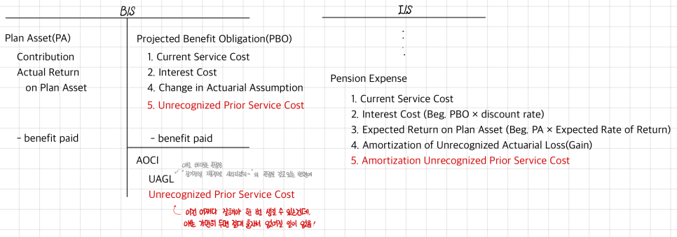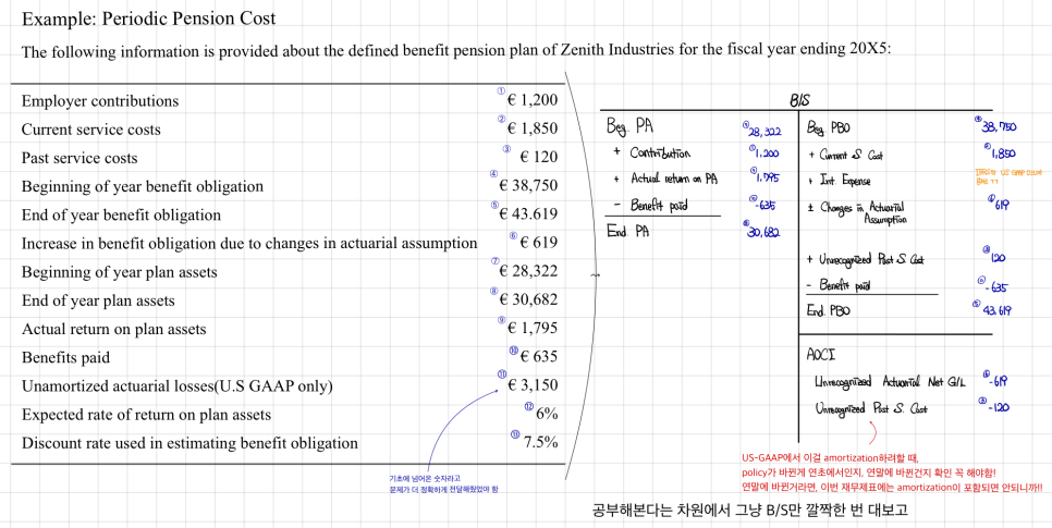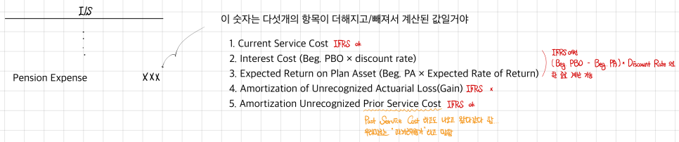 what needs to pile up as Pension Expense on the I/S goes all the way out to item 5!!! (For IFRS, item 4 of the 4 and 5 gets dropped, heh.)