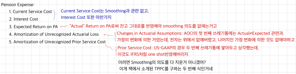 The Pension Expense on the I/S, though — that one has Smoothing baked in. So the move there is to convert it to TPPC (Total Periodic Pension Cost) — i.e., ask “what would this number have been if nobody had smoothed it?”
