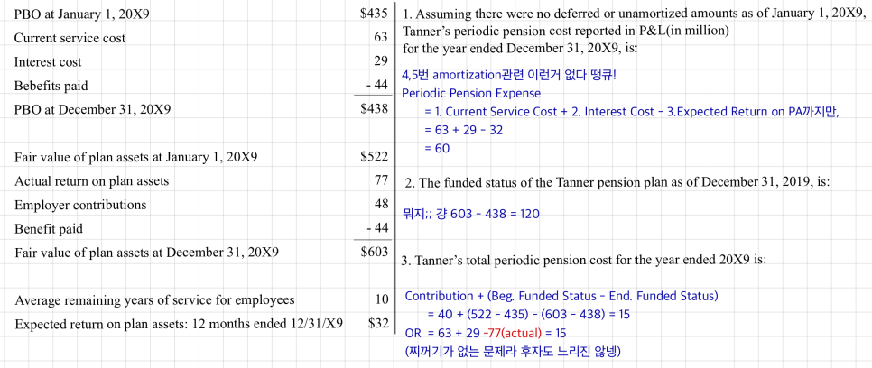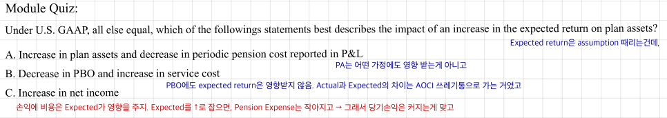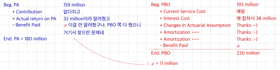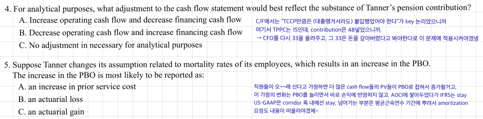 OK so — does PA, recognized from the accounting side, need to be corrected for the analyst who’s looking at this through an economic lens? Nah. PA is recognized basically like a real bank account balance, so there’s nothing to fix. What about PBO? From the accounting side, PBO is forecasting future retirement payouts and pulling them back to present value. Doesn’t seem like we need to mess with that either. So — the items already sitting on the B/S are economic-perspective figures as is. The B/S does not need adjusting. That’s why the textbook also says Funded Status = Economic Status.