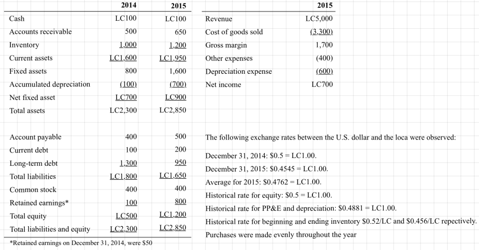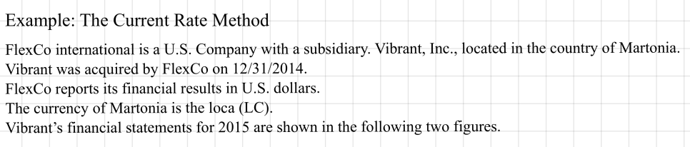 Use the appropriate method to translate Vibrant’s 2015 balance sheet and income statement into U.S. dollars.