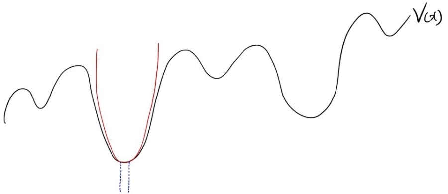 โ then it’s totally fine to write $V(x)$ as that red quadratic!! Because right around the $x$ we actually care about,