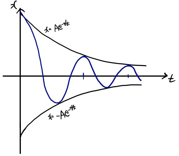 $$x\quad =\quad Ae^{-\gamma t}e^{iw_{d}t}\quad +\quad Be^{-\gamma t}e^{-iw_{d}t}$$That’s damped harmonic motion โ the everyday, garden-variety vibration you see all the time, right?