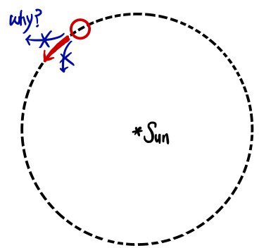 Why……… without leaving its orbit, can Earth just keep going around in a stable circular orbit??????