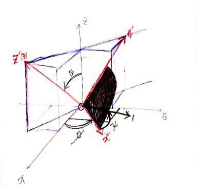 The three angles theta, phi, and psi completely determine the orientation of the rigid body in space. These are the Euler angles (Eulerian Angles).