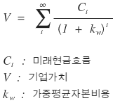 And we said the cost of capital we use is the weighted average cost of capital. So firm value $V$ looks like this: