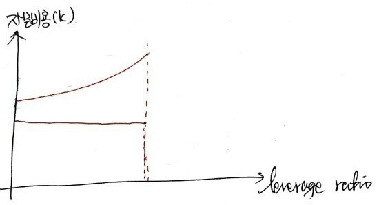 Imagine a company with a not-very-high leverage ratio ($B/S$). Even if it nudges that ratio up a liiittle bit, the distrust from outside is gonna stay roughly where it was, right?????