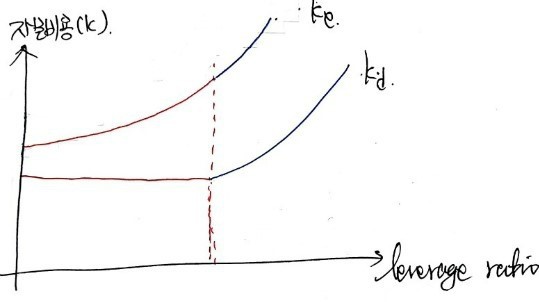 So at low leverage, when the firm cranks the ratio up a tick at a time, the creditors at the existing cost of debt capital