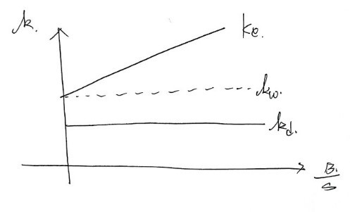 MM’s 2nd Proposition: The cost of equity capital must increase (linearly) in proportion to the debt ratio (leverage ratio).