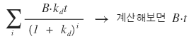 When you actually crunch this (infinite geometric series) — it conveniently shakes out to $Bt$.