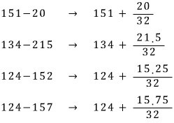 - Two digits after the dash: straightforward, $\tfrac{\text{number}}{32}$.