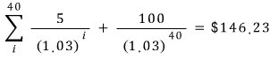We get the first $4 in 3 months, then $4 every 6 months for 18 years after that. Compute the value as of 3 months from now: