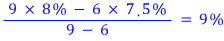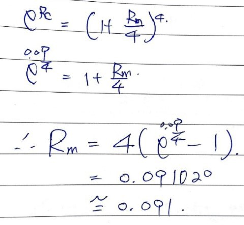 Those 8% and 7.5% โ those were real/365 and continuously compounded. But LIBOR is quarterly compounding and real/360. So we need to convert this 9% (continuously compounded) over to quarterly compounding.