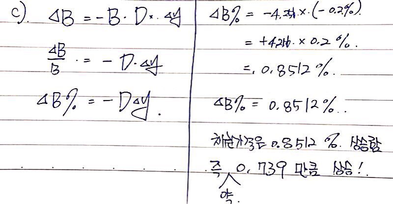 Probably feels obvious… Even though it’s a portfolio, since it’s all bonds, the portfolio’s duration is just the weighted average of individual bond durations, weighted by each bond’s investment weight in the portfolio.