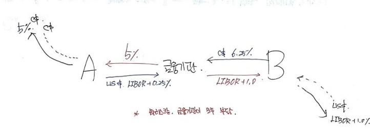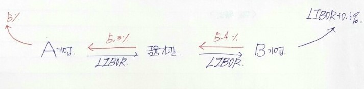 In other words: A gets LIBOR — that’s 0.5% better than the LIBOR + 0.5% it would’ve paid without the swap. B gets 6% — that’s 0.5% better than 6.5%.