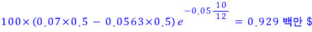 A $100M interest rate swap has 10 months left. Under it, 6-month LIBOR gets exchanged for 7% per year (semiannual compounding). The current average bid-ask for swaps of all maturities exchanged against 6-month LIBOR is 5% per year (continuous compounding). 6-month LIBOR was 4.6% per year two months ago.