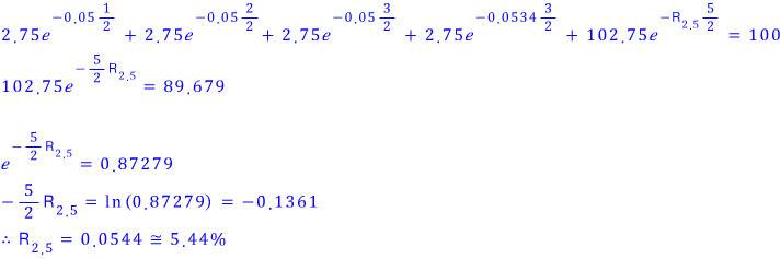 Same trick to back out the 2.5-year zero rate: