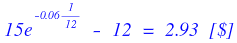 1 month to maturity, $S_0 = \$12$, $K = $15$, $r = 6%$.