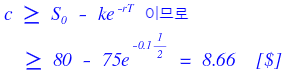 $S_0 = 80$, $K = 75$, $T = 6$ months, $r = 10\%$.