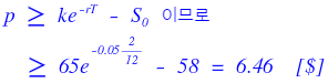 $S_0 = 58$, $K = 65$, $T = 2$ months, $r = 5\%$.