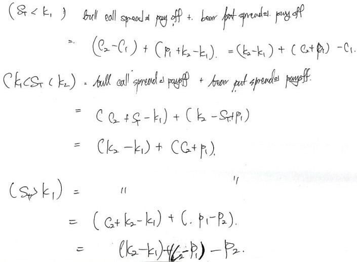Bull, bear, box from before needed 2, 2, and 4 options respectively, but only two strikes ($k_1, k_2$).