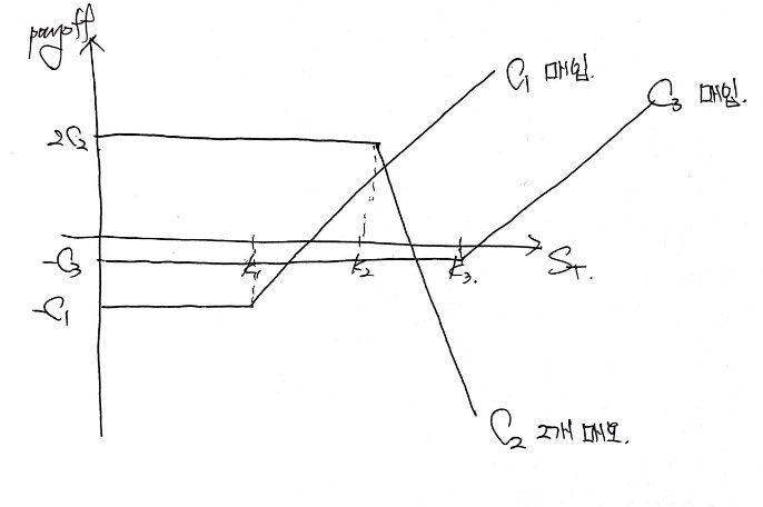 (Lower strike → more expensive call, so $c_1 > c_2 > c_3$.)