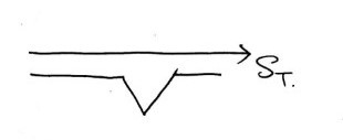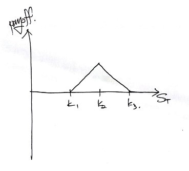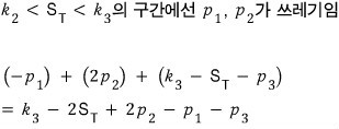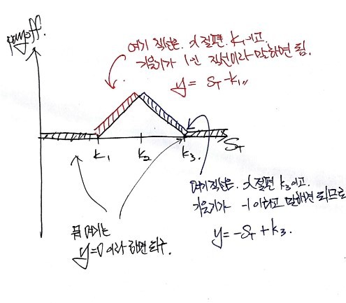 In the picture above, on the left side — the red region (you can’t see the color, sorry) — taking $S_T = k$ as the cutoff, the summed slope is 1. To the right of that (blue region), the summed slope is 0.