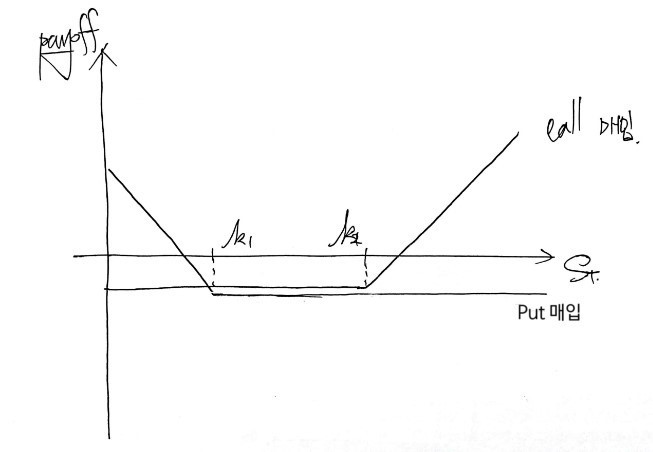 - Investor expecting high volatility → takes the bottom (long) straddle.